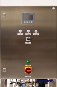 Die Steuerung der Anlage erfolgt über eine Siemens Simatic SPS. Über das Touchpanel können alle für den optimalen Betrieb erforderlichen Parameter eingegeben, sowie alle Prozessdaten beobachtet werden.