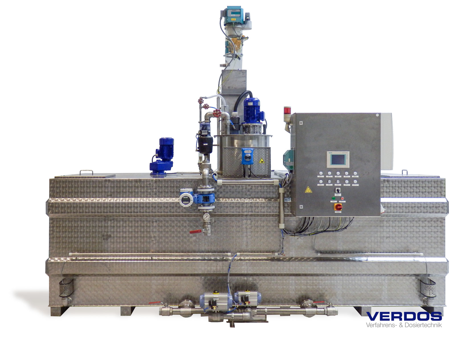 The system is controlled via a Siemens Simatic PLC. The touch panel can be used to enter all parameters required for optimum system operation and to monitor all process data, ensuring the preparation of a consistent polymer solution.
