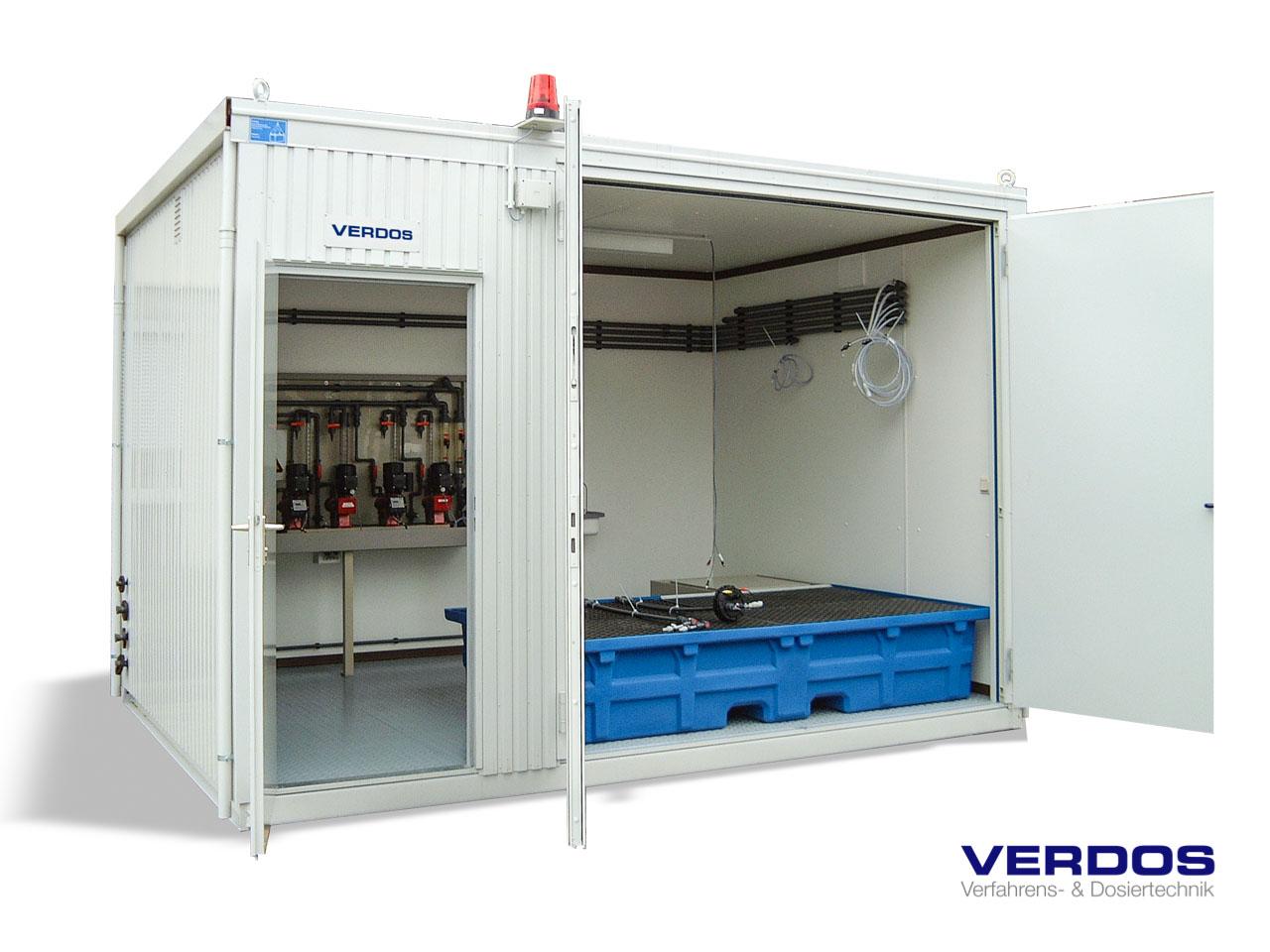 The dosing and measuring equipment can be installed either in designated rooms at the customer's premises or - for outdoor installation - in heated containers as a ready to use and ready to connect system.